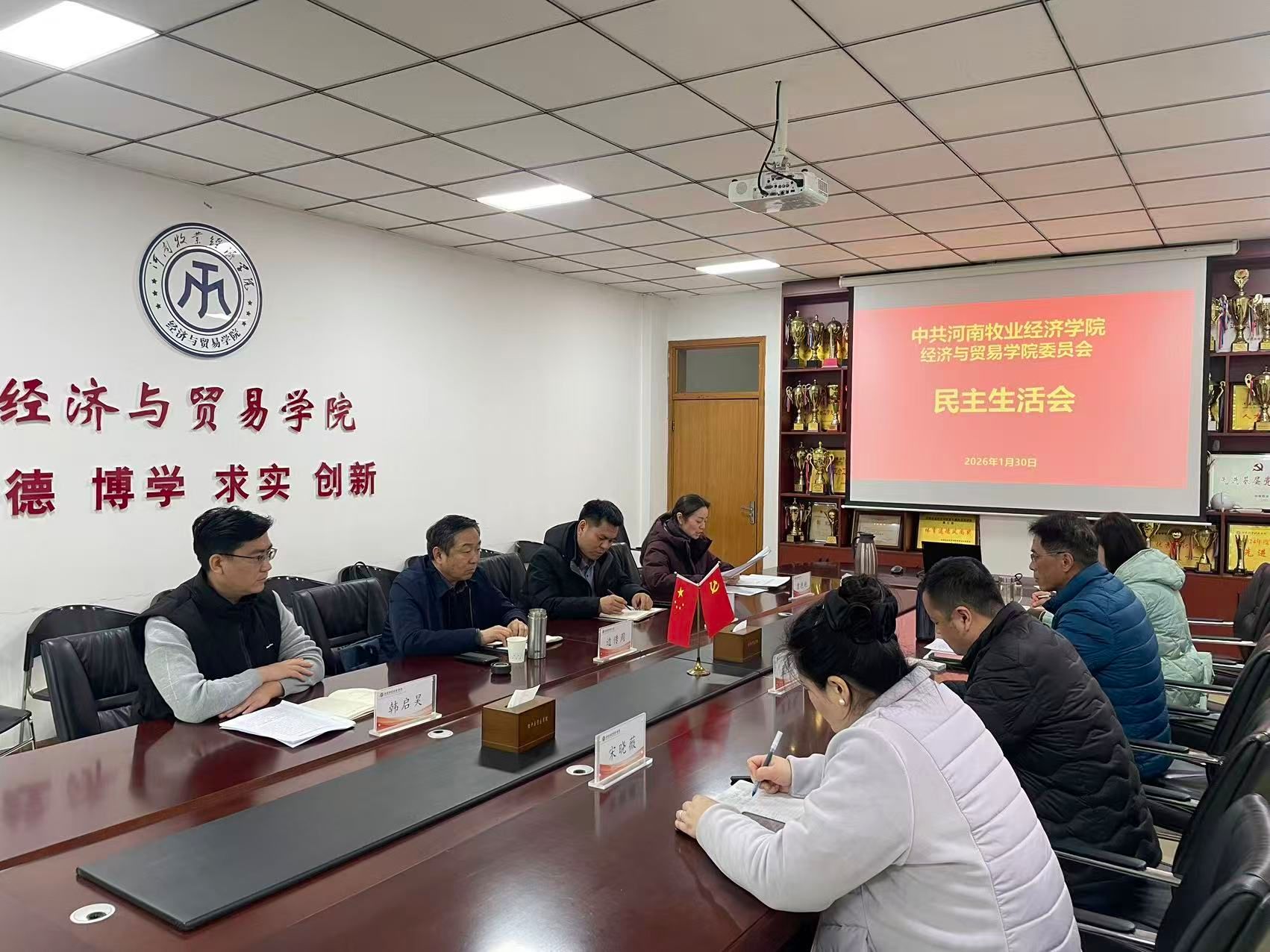 按照校党委《关于认真开好2025年度处级以上党员领导干部民主生活会的通知》(校党[2025]91号)要求,1月30日下午,经济与贸易学院党委在学院327会议室召开2025年度民主生活会,副校长边传周、纪委审查监察科科长顾自卫与会指导。院党委班子全体成员参会。会议由院党委书记贾艳艳主持。